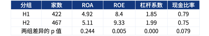 分行业看,在指标均值上,除综合行业外,共有28个实体行业的套保公司出现了H1和H2的子组划分。杠杆系数、ROE、ROA和现金比率四个指标的均值上都有过半数的行业呈现出了套期保值的“时间加强效应”(见图8)。