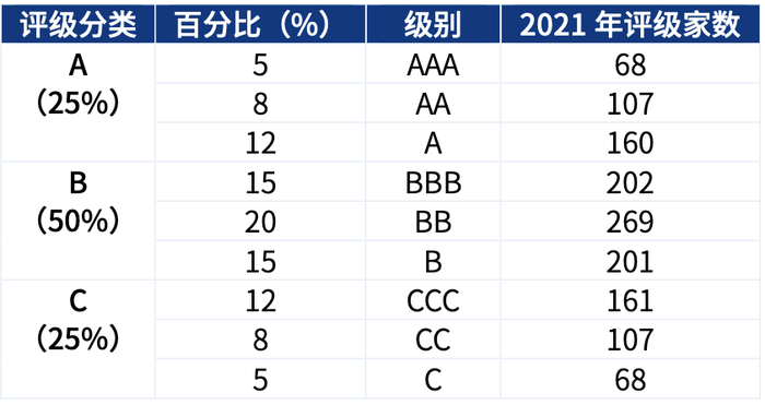 表2: 衍联中国上市公司套保评级分类方法及2021年评级分布