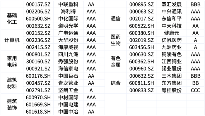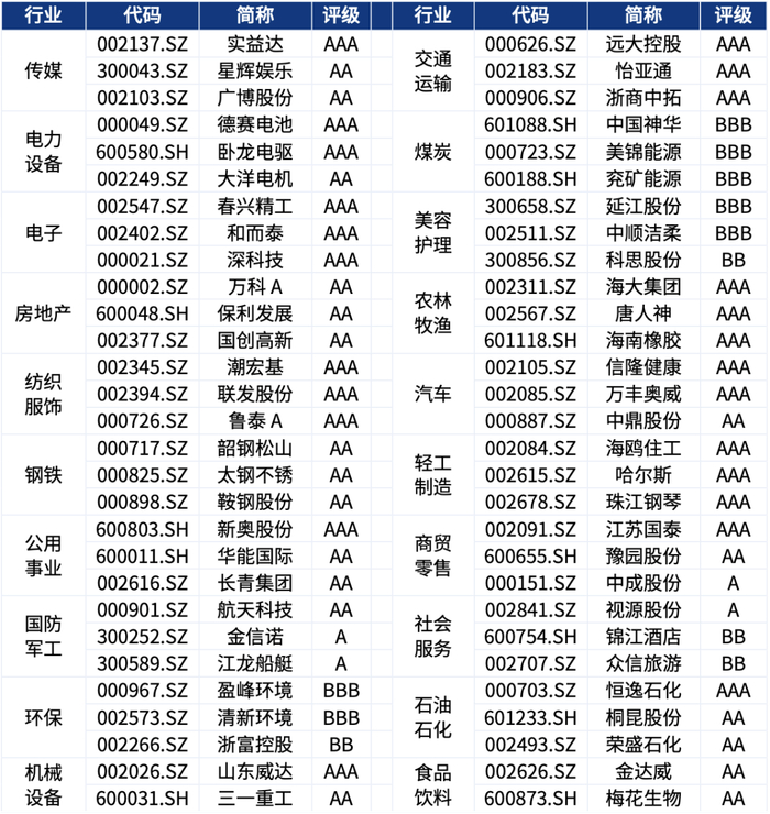 表4: 2021年衍联中国上市公司套保评级排行榜(各行业Top 3)