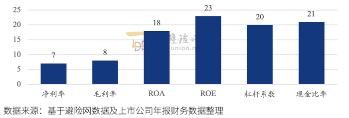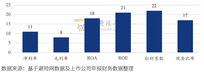 从指标均值上看,在ROE、现金比率、杠杆系数、ROA这四个指标上,套保公司相对于非套保公司胜出所在行业数量较多(见图7),均超过了全部29个实体类行业的半数。
