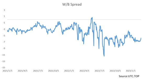 UTC终端市场分析师王远飞认为:在美联储加息预期进一步走强的背景下,23年WTI的夏季需求增长预期正在被压缩,这将导致美国原油出口数量曲线的回落表现可能不如往年,也就是说今年夏季美国原油对于全球的供给出口数量将大概率强于往年,而中国经济复苏进程仍然充满了较大的不确定性,23年夏季全球原油的市场销售形势将更加严峻,广大专业原油交易员应该密切关注WTI/BRENT原油价差夏季段的走势表现,如果美国原油出口数量趋势继续增长而23年夏季段的W/B价差依然较为宽阔,则意味着全球原油需求不及往年的概率较大,进一步,考虑到美国与俄罗斯和欧佩克的紧张关系和WTI即将被纳入布伦特计价体系,接下来夏季段的原油价格波动率特点与往年表现截然不同的概率较大。