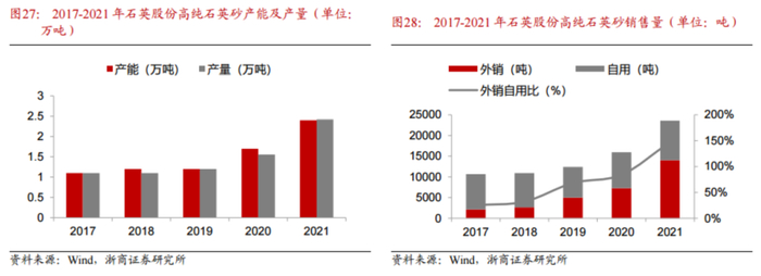 2021年高纯石英砂产量为2.4万吨,同比增长55.8%,2022年名义扩产4万吨项目在6月完成满产,将推动公司进一步扩大市场份额。