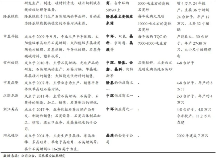 由于石英坩埚在拉制晶棒环节的重要作用,导致下游企业通常只会选取少数石英坩埚供应商为其供货,石英坩埚行业仅有少数几家企业分享到下游行业产能扩充的红利,国内石英坩埚市场份额较大的主要是欧晶科技、隆基绿能、中昱科技这3家企业,其他企业规模总体较小