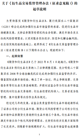 3月17日,中国证监会就《衍生品交易监督管理办法(征求意见稿)》(下称《办法》)公开征求意见。