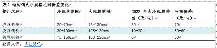 结构钢大小规格之间的价差变化