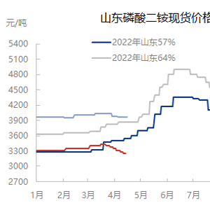 随着国内磷酸二铵春耕市场临近尾声,64%二铵货源也出现下滑风险,主因原料硫磺、合成氨价格下滑明显,两者同比2022年同期降幅分别在 72.38%和34.72%,成本面继续向下,业者心态受挫,对后市心态偏空。需求方面表现不温不火,分区域来看:东北部分地区底肥已施用,需求接近尾声,近期需求虽有所跟进,但以57%黄色二铵为主,64%需求相对少量;华北地区玉米肥需求暂无跟进,成本下降且对后市信心不足,目前下游暂稳观望中,整体需求低迷,且玉米肥对57%黄色需求量大,64%采购量少;国际市场来看,公共尾声事件后国际产能复苏,供应表现充足,需求端只印度市场较为活跃,印度议价能力增强,国际价格持续下滑,目前中国出口离岸报价至560美元/吨FOB附近,折合国内湖北出厂价3700元/吨附近,已低于国内市场价格水平。
