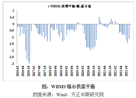 世界金属统计局(WBMS)最新报告显示,2023年1月,全球精炼锡产量为3.14万吨,消费量为3.2万吨,供应短缺0.06万吨。2023年1月,全球锡矿产量2.77万吨。