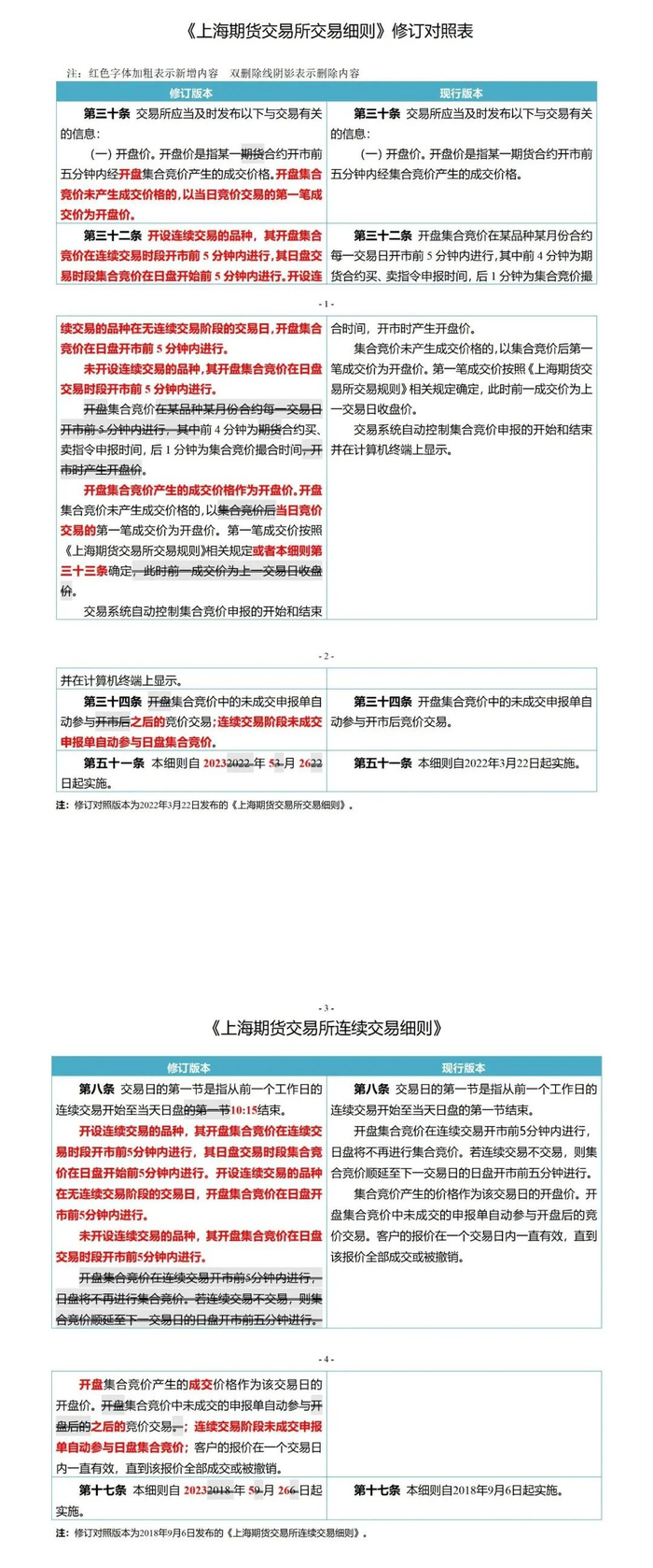 2023年4月26日,上海期货交易所发布公告,对《上海期货交易所交易细则》及《上海期货交易所连续交易细则》进行修订;上海国际能源交易中心发布公告,对《上海国际能源交易中心交易细则》进行修订。自2023年5月26日(即5月25日晚连续交易)起,对于开设连续交易的品种在日盘开始前5分钟(即08:55至09:00)增加集合竞价。就市场关心热点,上期所相关负责人回答了记者提问。