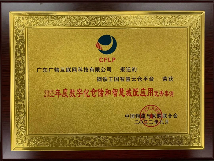 另外,广物互联还凭借“钢铁王国智慧云仓平台”,在中国物流与采购联合会上荣获“2022年度数字化仓储和智慧城配应用优秀案例”奖。