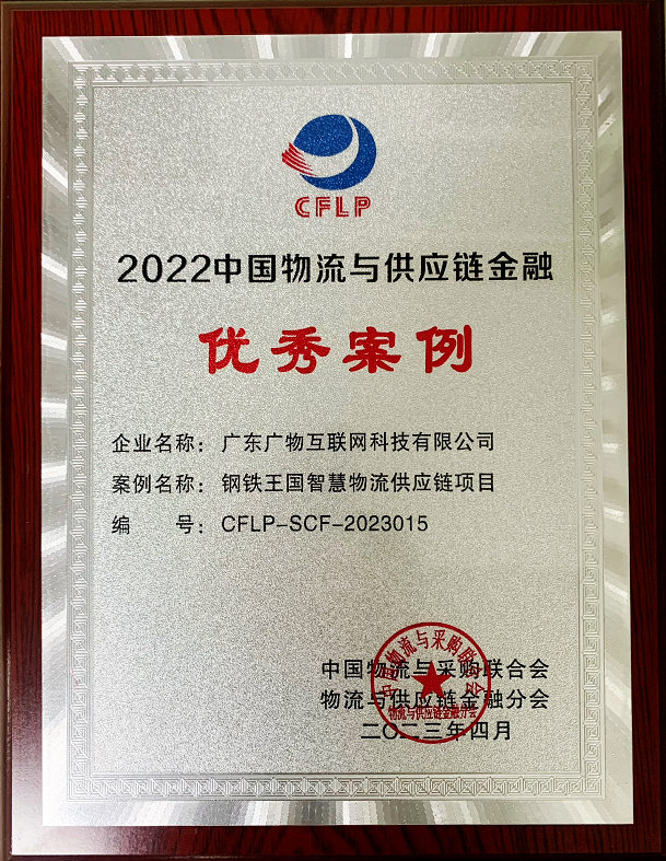 广东广物互联网科技有限公司,凭借“钢铁王国智慧物流供应链项目”的科技创新,在本次峰会荣获“2022中国物流与供应链金融优秀案例”奖。
