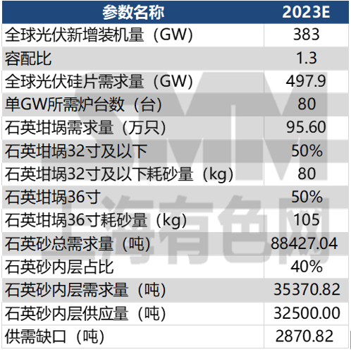 据SMM测算,2023年硅片需消耗的高纯石英砂内层砂量约为35370吨,考虑石英股份的内层砂后,市场内层砂缺口量仍为2870吨左右,较为紧缺的内层砂大力支撑着高纯石英砂价格的上涨。