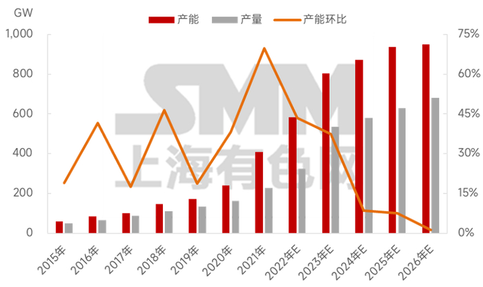 需求端,受光伏装机量迅速提升的影响,硅片需求量也迅速提升。3月份我国硅片产量达到45.1GW,同比大增74.81%,而至2023年底预计我国硅片产能将达到878GW,产能同比增速为27.06%,高速扩张的硅片产出也将持续带动石英砂的需求量。