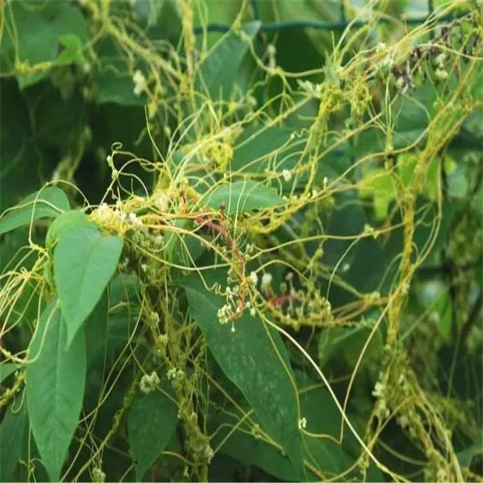菟丝子属寄生性草本植物,主要寄生双子叶作物。其自身光合作用极弱,靠緾绕并吸取寄主大豆获得发育所需营养。