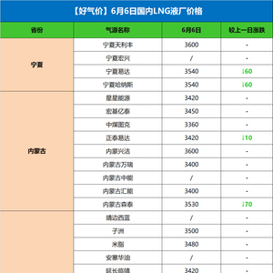 【好气价】6月6日各地液厂价&到站价
