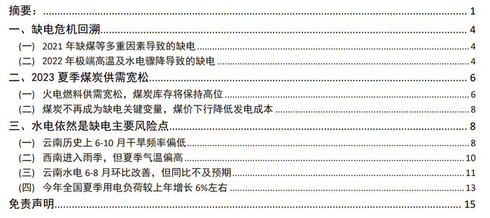 本文主要从煤炭供给及水力发电的角度,对中国2023年是否会发生电力短缺进行了分析。今年煤炭保供形势好于预期,今年由缺煤导致出现缺电风险的概率极低,2023年电力迎峰度夏的主要风险仍然集中在水电出力情况及极端天气的概率,预期2023年夏季7-8月仍可能存在用电缺口。