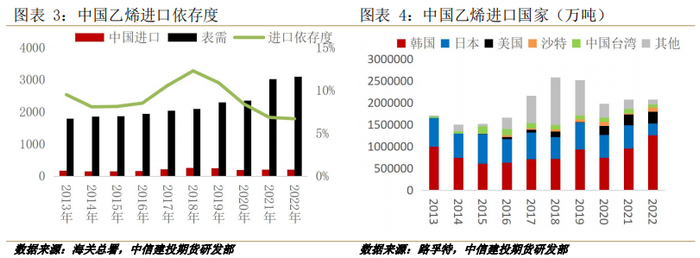 01中国乙烯产能持续扩张,进口依存度下滑