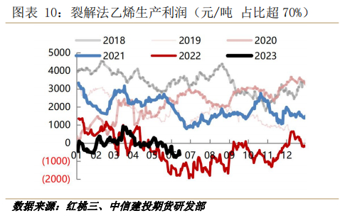 站在乙烯及其配套下游效益角度,近些年来随着乙烯装置的投产及石脑油价格的较强表现,乙烯生产利润压缩明显,尤其是2022年至今该利润多数时间处于亏损或盈亏平衡状态,提高利润较好的下游装置负荷,或配套相关装置为未来发展方向。