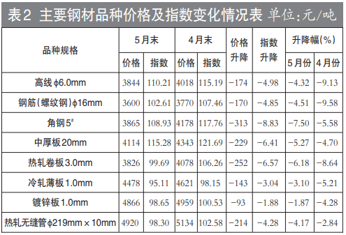 5月份国内市场钢材价格持续下降