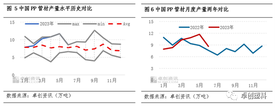 综合上述分析,卓创资讯延续《2022-2023中国聚烯烃管材市场年度报告》中关于下半年的趋势预测,预计下半年PP管材市场价格呈倒“N”型走势,重心继续下移,下半年原油预计除了第三季度油价波动重心有望小幅上移之外,第四季度油价上移幅度恐将加大,原油的上移或将进一步带动轻烃等原料走强,但考虑到未有新增石化企业加入管材排产队伍,PP管材主产企业仍以老牌企业为主,供应暂未有明显增量,预计下半年供应量较上半年变化不大。房地产市场投资数据持续下滑,新开工数据表现不佳, 预计下半年PP管材需求难有起色,但从管材季节性需求来看,下半年需求端或缓慢走强后逐步转弱。
