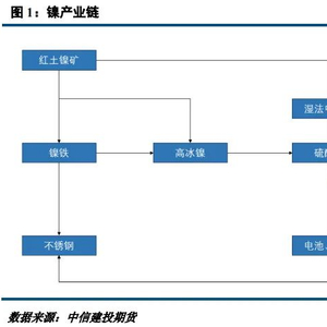 所谓电积镍,是从工艺上区别于电解镍的一种一级镍,从生产工艺上看,电解镍在生产过程中会经历阳极溶解、阴极析出的过程,而电积镍在通电电解时,阳极并不会溶解。除了工艺上的区分,电积镍与电解镍在原料上还存在差异,产业链角度看,镍市具有“二元供应”特征,即上游矿端可分为硫化镍矿和红土镍矿两个条线,其中电解镍大多由硫化镍矿条线生产而来,而生产电积镍的大部分原料则来自红土镍矿条线。此外,二者终端应用亦存在区别,电积镍目前主要应用于不锈钢,而电解镍用途更为广泛,除不锈钢外,亦可应用于电镀、高温合金等高端板块。