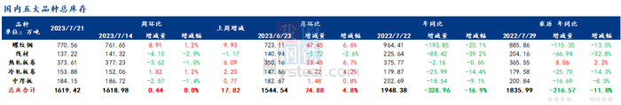 Mysteel解读:聚焦钢铁产业数据(7月20日)—五大钢材供应环比回升,整体累库幅度明显不及预期