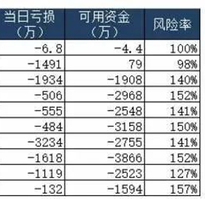 其次可以看到可用资金几乎一直处于负数的状态,炒股的人可能不明白怎么回事,期货是有杠杆的,这位交易者一直是满杠杆的状态持仓,导致自己账户里的保证金不够用,所以显示保证金一直是负几千万,风险率一直在100%以上。