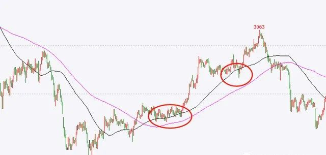 图是某商品30分钟上的走势图,第一次价格在60日均线上拉起来了,那么庄家的思路就不会那么快转变,而是会继续找第二次解除的机会拉涨,这就是相似性