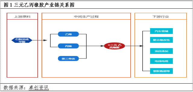 就产业链位置来看,三元乙丙橡胶处于中间环节,上游乙烯丙烯为主要原料,从成本面对于三元乙丙橡胶价格产生影响;下游为直接性制品行业,从需求面对于三元乙丙橡胶价格产生影响。因此可以看出,三元乙丙橡胶处于产业链的中间环节。就产业链的价传导来看,三元乙丙橡胶处于何种位置,且看下文分析。