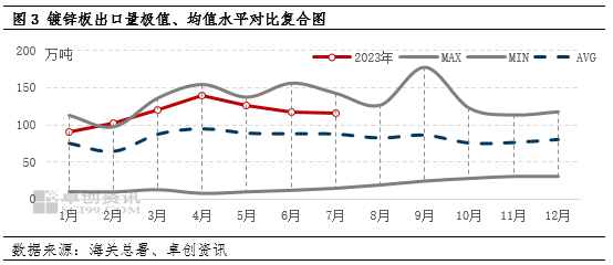 涂镀行业研究04:7月镀锌板出口量略有下滑 未来出口先强后弱
