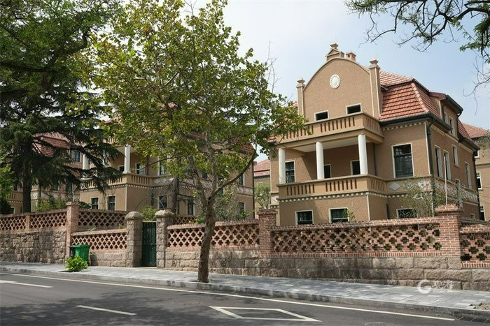 红瓦黄墙、亦中亦洋的别墅建筑。