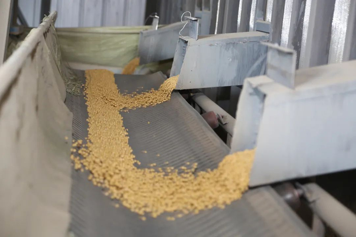 “这批精选出的大豆一部分是达利食品有限公司要的订单,我们即将运往河北霸州。另一部分是送到我们的下一个加工地点,九三分公司经济开发区豆仁加工厂。”嫩江农场兴嫩粮贸党支部书记邹伟华抓起一把大豆,一边查看品质一边向笔者介绍,为了让咱们的好大豆更符合市场的不同需求,农场牢牢把握市场导向,创新经营模式,不仅着力解决品种混收混储、优质难以优价的问题,还形成了专用专供基地的模式化生产、订制式供应。