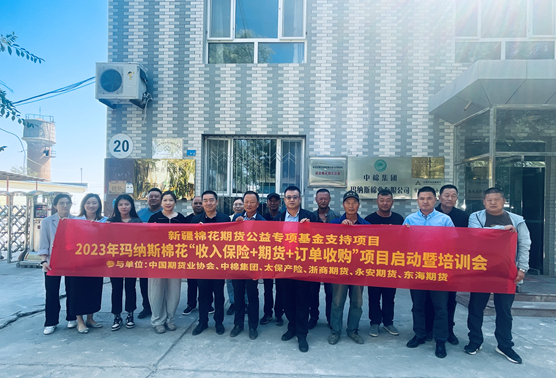 为积极贯彻落实中央一号文件精神,发挥资本市场支农作用,服务新疆棉花产业发展,2023年9月19日,新疆花期货公益专项基金支持项目——2023年玛纳斯棉花“收入保险+期货+订单收购”项目启动暨培训会在新疆维吾尔自治区昌吉回族自治州玛纳斯县顺利举行。棉花种植户代表以及中棉集团、太保产险、浙商期货、永安期货、东海期货等机构代表参加会议。项目得到中国期货业协会的指导和支持,由浙商期货会同中棉集团新疆公司、太保产险新疆分公司、永安期货、东海期货负责实施。