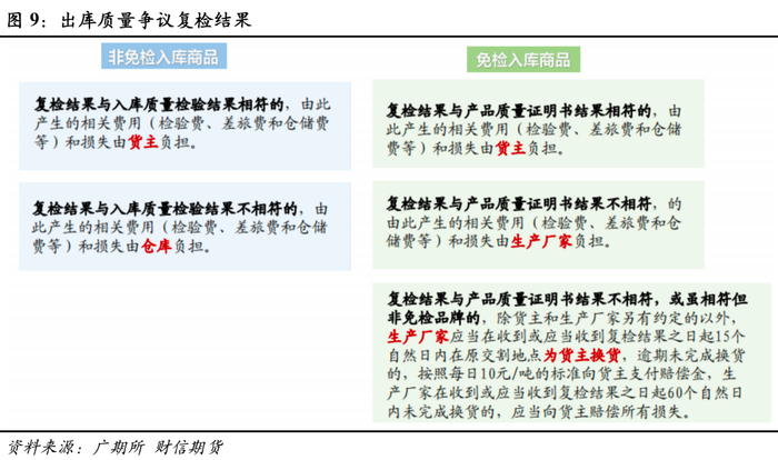 交易所委托指定质量检验机构进行复检,复检结果为解决争议的依据。复检费用由货主先行垫付。