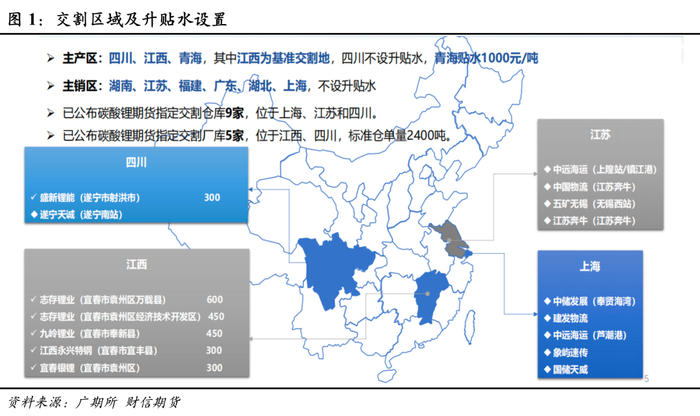由于厂库仓单不需要入库检验,以及现货端电池级碳酸锂江西较四川有1000元/吨的升水,因此预计四川产区的电池级碳酸锂是目前最低交割品。
