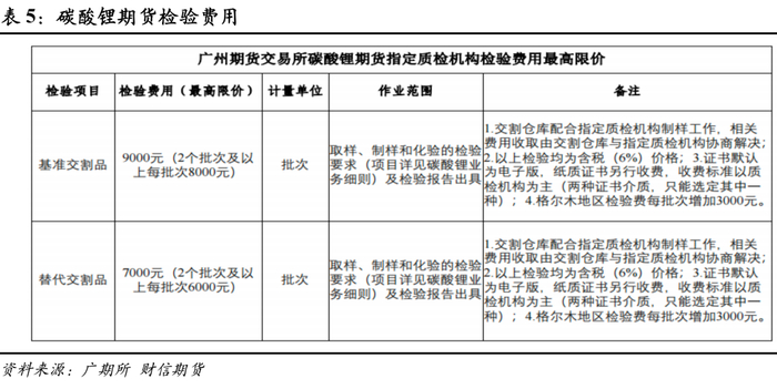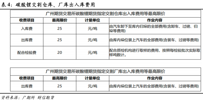 碳酸锂期货交割手续费为1元/吨,仓储费为5元/吨/天,出入库费为25元/吨,配合检验费是20元/吨。根据广期所发〔2023〕54号,暂免收交割手续费。与目前已经上市品种相比,碳酸锂的交割手续费设置相对合理,不会增加大家的交易成本。