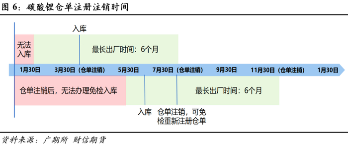 但要注意,碳酸锂期货仓单有注销制度。每年3月、7月、11月最后一个交易日之前(含当日)注册的碳酸锂期货标准仓单,应当在当年3月、7月、11月的最后一个交易日之前(含当日)全部注销。但注销后,未出库且生产日期在60天以内(含当日)的基准交割品和240天以内的替代交割品可以重新申请注册,无需进行质量检验。