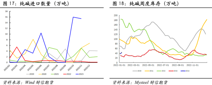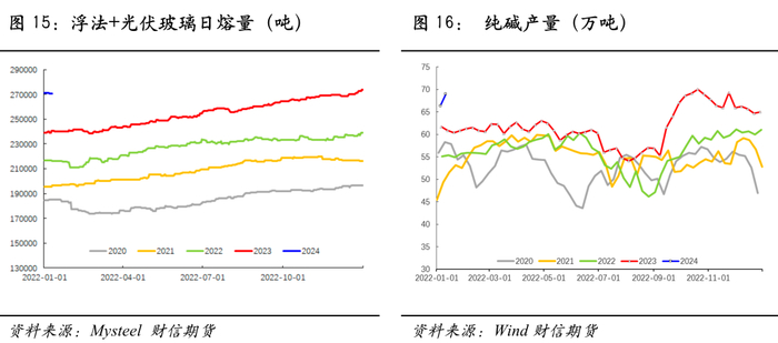 政策方面, 政治局会议针对明年强调“以进促稳、先立后破”,财政政策提到要“适度加力、提质增效”。中央经济工作会议强调稳妥化解房地产风险,一视同仁满足不同所有制房地产企业的合理融资需求,加快推进保障性住房建设、“平急两用”公共基础设施建设、城中村改造等“三大工程”完善相关基础性制度。如我们年报中所述,这对竣工端建材需求提振相对有限,我们预估2024年资金端对竣工需求的拉动脉冲式,整体或前高后低,而浮法玻璃供给端将继续高位运行,玻璃格局或逐步转变,中期玻璃05在1900-2000元/吨一线面临较大的压力。