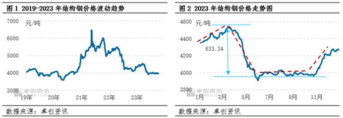 2023年国内外经济形势更加复杂多变,尽管宏观面一系列促消费举措频发,但地产、基建投资下滑等因素影响,钢市下游需求表现疲弱,加上原料价格上涨,结构钢价格处于高成本、强预期与弱现实的持续博弈中,钢价整体呈现下跌,不过从四季度表现来看,需求逐渐发力带动价格出现较为明显的回暖。