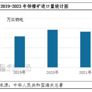 根据卓创资讯统计,近五年来中国锌精矿进口量呈现出震荡上涨的态势,尤其是到2023年进口总量达到了471.34万实物吨,相比于2019年的317.63万实物吨增加了153.71万实物吨,增幅48.39%。