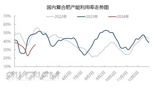 截止2月最后一周,国内复合肥产能利用率继续提升至35.97%,环比提升3.19%,下周期进入春耕旺季,市场集中走货,装置开工负荷将会继续提升。而从对磷酸一铵的需求面来看,当前下游复合肥企业原料尚存部分缺口,据悉东北备货7-8成附近,近期对原料采购积极性提升不足,且当地复合肥工厂对今年的产能存下滑预期,原料采购计划预计减量。其他地区来看,上周贸易商及下游工厂陆续有进行原料采购,随着价格的不断抬涨,成本增压,且春季高氮为主,对一铵或将趋谨慎按需采购。