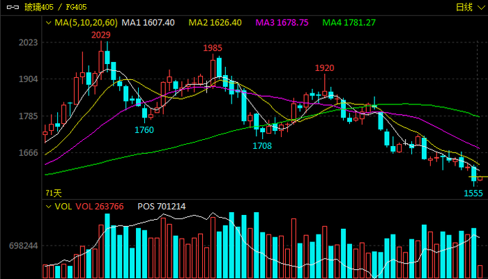 昨日,玻璃期货大幅下跌,盘中主力合约最低触及1555元/吨,刷新去年11月初以来低点。