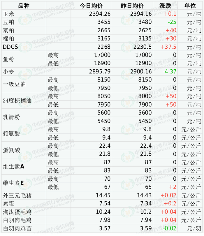 备注:每日行情汇总各品种报价截止时间为11:30,统计时间的不同会造成当日价格有小幅差异可能。