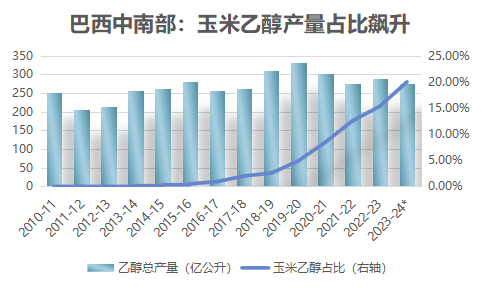 巴西含水乙醇折糖价自去年7月份跌破15美分/磅以来,价格持续在13-15美分/磅的低位窄幅震荡至今,对原糖期货价格大幅贴水8-12美分,糖厂产糖收益大幅增加,本榨季的产糖甘蔗比例达到49%以上,使得23/24榨季糖醇比的讨论成了伪命题。24/25榨季的糖醇比例前景如何?政策面上,巴西计划在今年6-7月起将汽油中的乙醇掺兑比例上调至30%,并且进一步上调至35%的提案已经呈上。据国际机构预估显示,24/25榨季巴西乙醇消费量将受此政策变化的影响增加12-15亿公升,但对甘蔗制糖比例的影响还取决于下榨季玉米乙醇产量的扩张程度。由于巴西玉米产量维持高位且制乙醇成本低于甘蔗,本榨季中南部的玉米乙醇产量预计达到约62亿公升的历史新高,在总乙醇产量中的占比也将达到约18%。近期据说巴西的玉米乙醇工厂进一步增加了产能,24/25榨季玉米乙醇产量有望达到72-75亿公升,若增产预估兑现,汽油乙醇掺兑比例上调至30%的新增需求将大部分可由玉米乙醇的增产来满足,对甘蔗制糖比例的影响或有限。不过,当前市场对24/25榨季甘蔗制糖比例为50-51%的预期打得过满,关注后期巴西继续出台偏向于刺激乙醇需求的政策的可能性,制糖比例或有下调的空间。