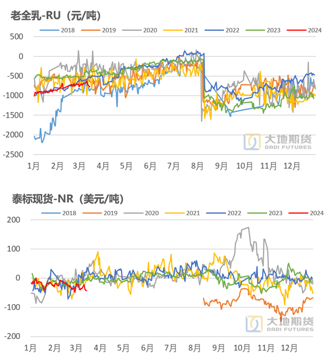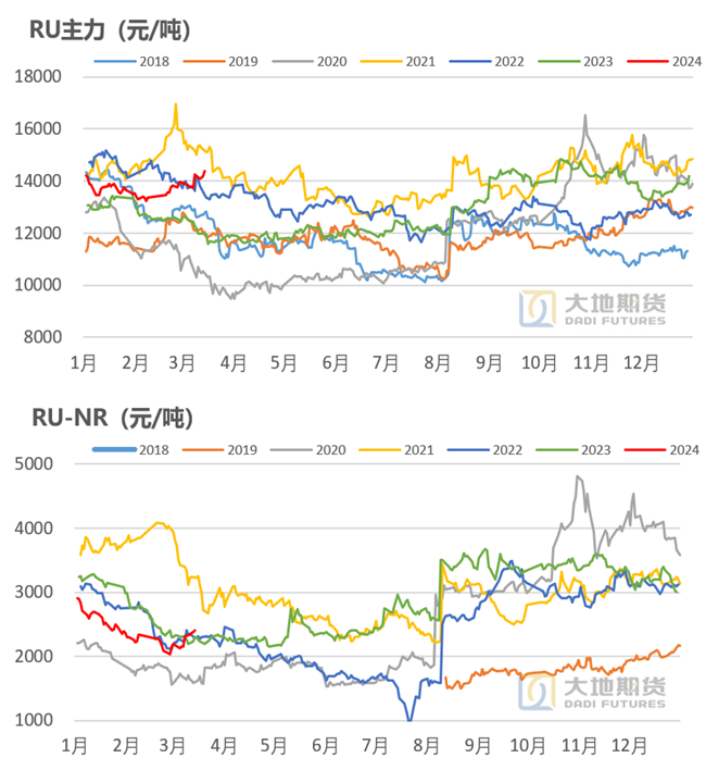 RU月差走扩,NR月差走弱