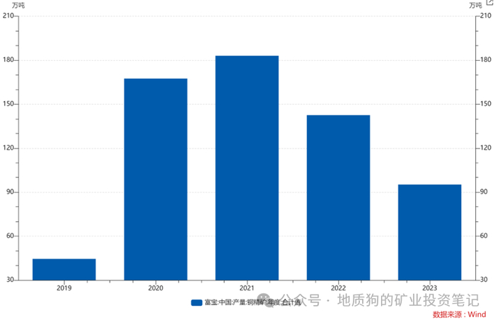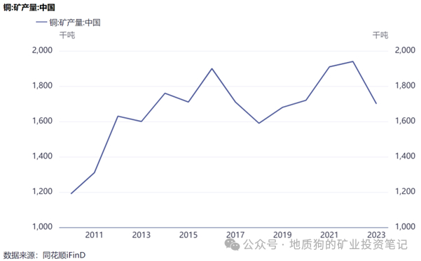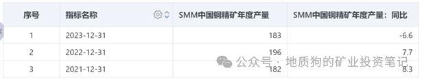 我一开始看到中国产量下降,心中也是打了一个问号,因为国内矿山普遍都很分散,大项目不多,而且中国公司的信息披露也不是很完善,大家对中国铜矿的印象是比较模糊的,所以我去找了一下中国铜矿产量的数据。