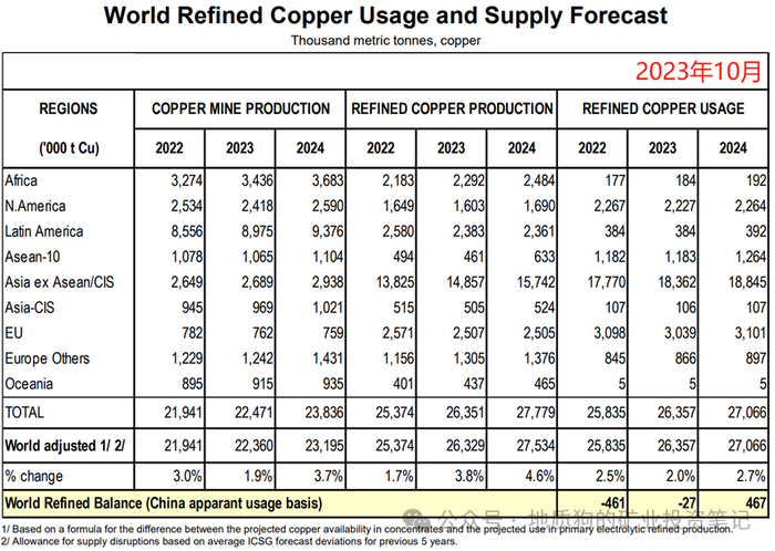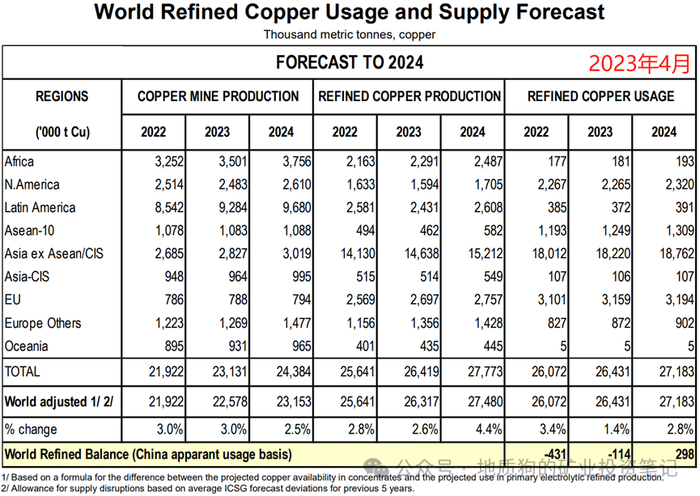 对矿山产量增长的预期是在一步一步下调的。因为ICSG的数据是公开的,容易获取得到,并且有连续的记录,所以我把他们对2023年矿山产量增长的预测罗列出来:
