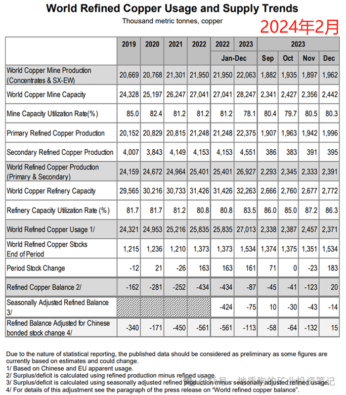 到底是哪些地区的不及预期呢?2024年2月的ICSG月报也有一定的说明:智利、中国、印尼、巴拿马和美国。