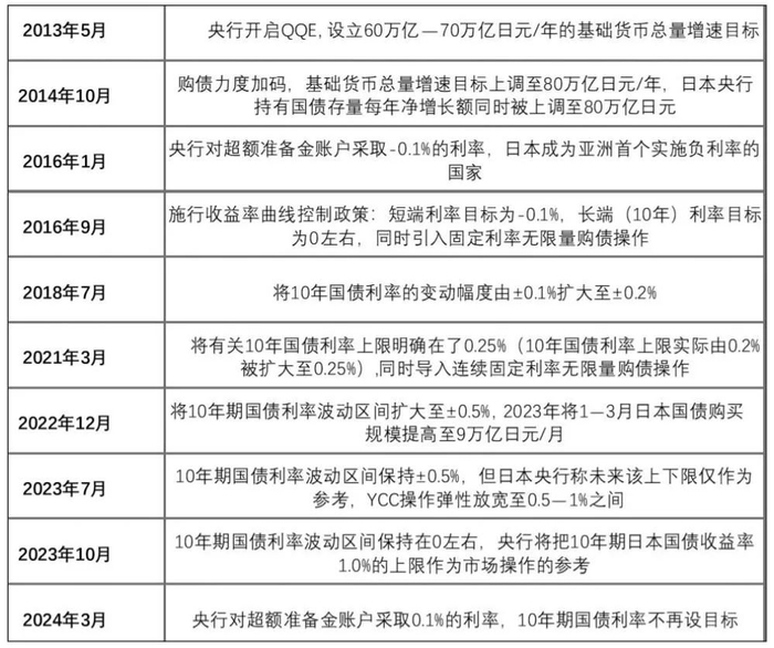 表为日本货币政策变化