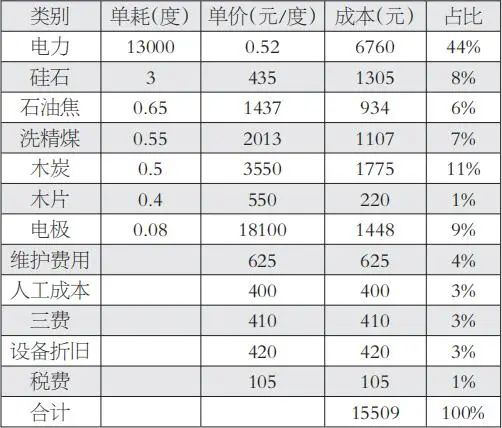 表为2024年3月云南421#工业硅成本模型