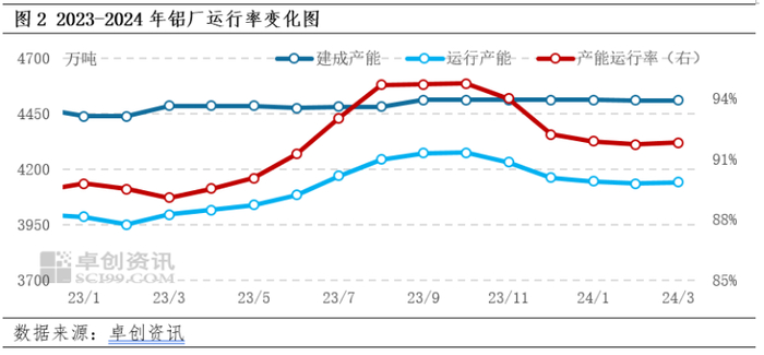 【导语】2024年一季度,铝价先跌后涨,呈现“V”型走势。一季度铝市场供应相对稳定,需求由弱势逐渐回暖,宏观面给予铝价较大支撑,而后市预计宏观面支撑减弱,需求逐渐由较强转为温和,市场预计二季度铝价或见顶回落,整体维持在高区间运行。